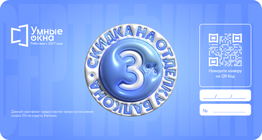 Скидка 3% на остекление балкона или лоджии при заказе в период действия акции «Выгодные балконы».